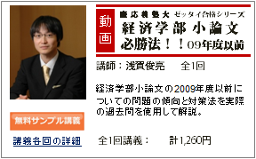 | 01 | 慶應義塾大学経済学部 小論文必勝法 | 23:52 |   | 1,260円 |  |