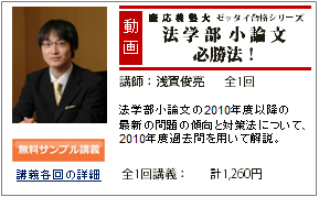 | 01 | 慶大ゼッタイ合格シリーズ:法学部小論文必勝法 | 27:52 |   | 1,260円 |  |
