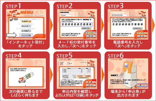 セイコーマート店内に設置されているクラブステーション (情報端末) 操作はカンタン、画面に従ってタッチパネルを押すだけです。 |  |