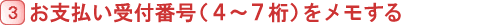 画面上(もしくはメール)にて、お支払い受付番号を表示いたします。